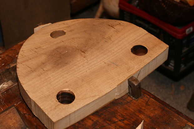 Para obtener el ángulo recto en las piernas correa un pedazo de scrapwood a la mesa del taladro. El asiento se incline en el borde de la scarpwood y la tabla dando las 3 patas del mismo ángulo.