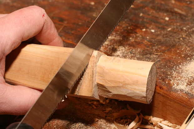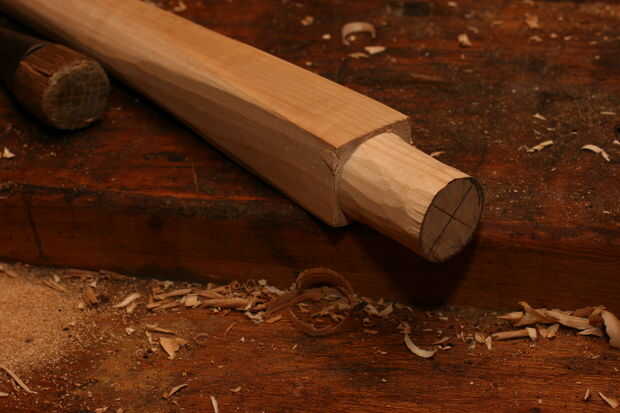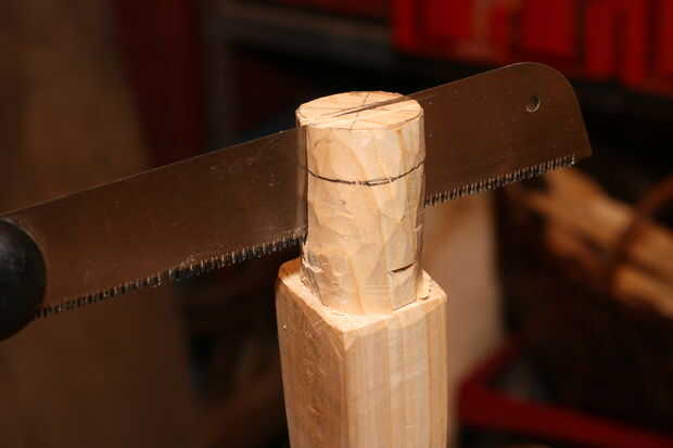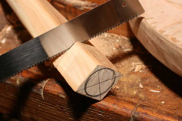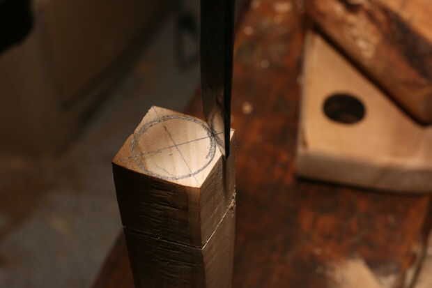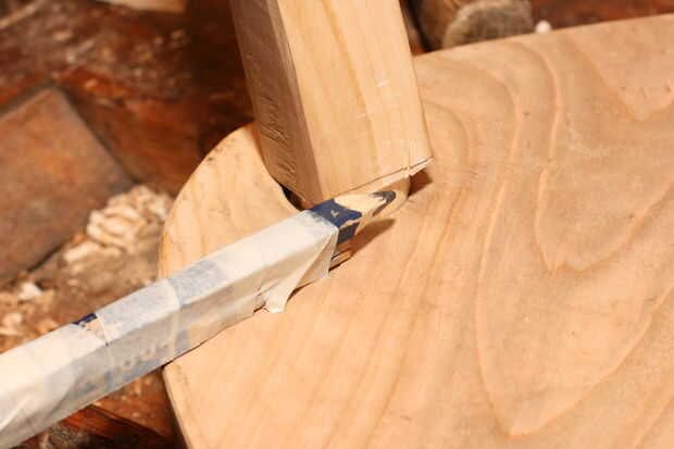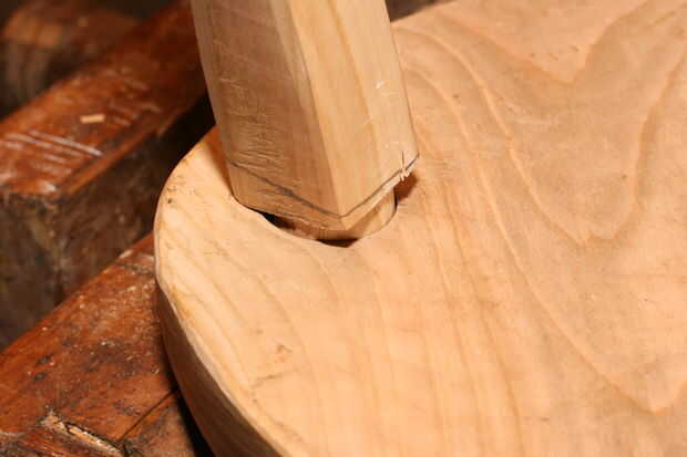 Ir lento y tenga cuidado de no hacer de mucha madera a la vez, si haces que la pierna sea floja. Y cuando se seco la pierna en el agujero no fuerza con un martillo o un club. Si usted no puede empujar a mano se a apretado y necesita quitar más madera de un poco de la pierna.