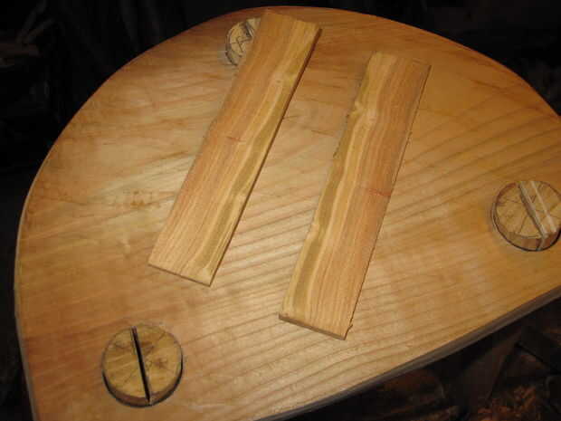 Para asegurarse de que las piernas no caigan voy a poner en una cuña. Utilizar el mismo tipo de madera de la cuña en este taburete. Pero puede utilizar alguna madera más oscura o más ligera para llevar a cabo un contraste para una mirada diferente. A veces usar cuñas de ébano en un taburete de abedul, que da un buen contraste. Recuerde que si desea que el taburete para ser una copia real de un taburete de viking el ébano no es ir.