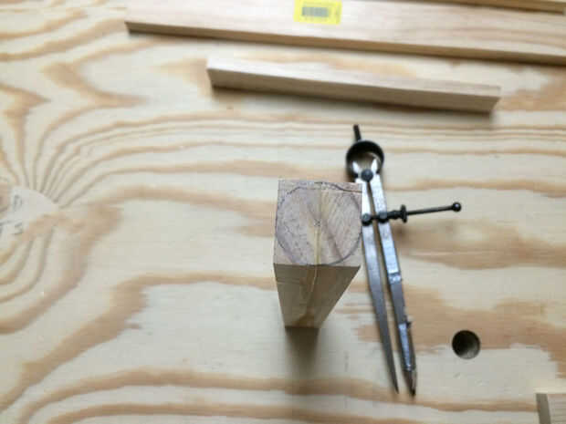 Utilizando un compás, dibuje un círculo en cada extremo de la culata. En este caso configurar la brújula para 1/2". Esta será mi guía de como estoy de cepillado.