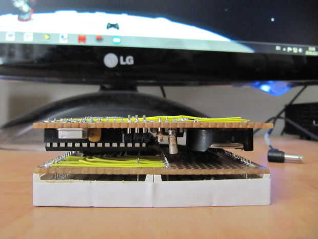 El microcontrolador es muy sencillo, es un arduino independiente (ATmega328 con arduino bootloader) con