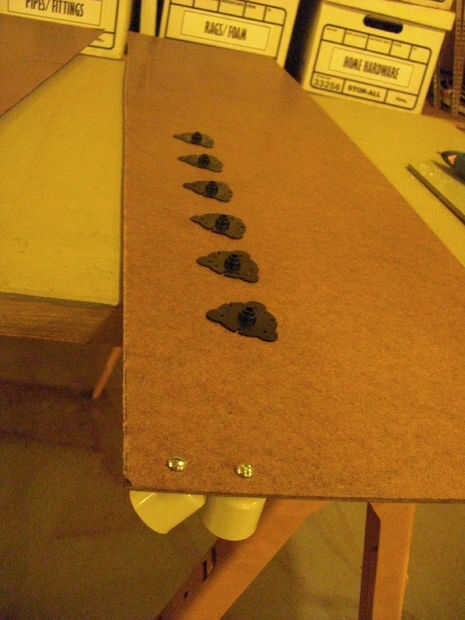Las alas eran una forma simple y os adjunto algunas piezas de plástico que quedaron de los murciélagos de pilas (montajes de techo). Dio una nueva dimensión en el panel. Se utilizaron los dos casquillos de extremo de 3/4" para sujetar los soportes del ala exterior a los paneles de la carrocería. El interior del ala solo atraviese la portezuela trasera del crucero.