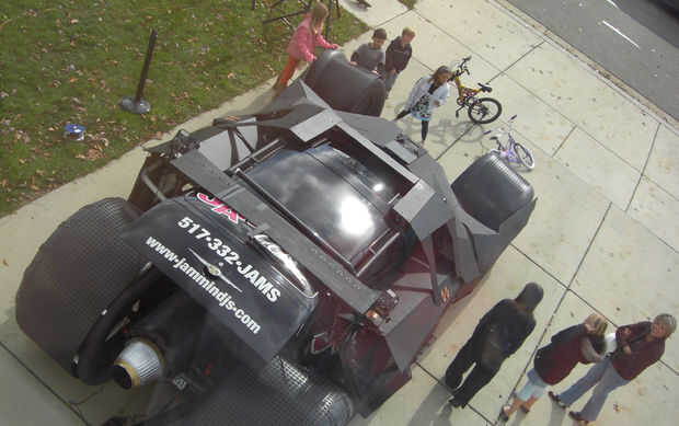 Tenía la esperanza de que a los niños que fueron vestidos como Batman en el coche por lo que podría estar parado para arriba por el techo corredizo abierto para un op de foto, pero estaba demasiado fría. Aquí está una foto de mi hija en el coche al día siguiente. Todavía dibujó una multitud de espectadores en todo el fin de semana.