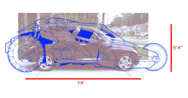Hice la decisión de construir proporcionalmente más delgada que la original para que la estructura podría ser razonablemente apoyada con el coche por debajo. (Las medidas que aparecen son del crucero que utilizado para estimar el tamaño del proyecto terminado).