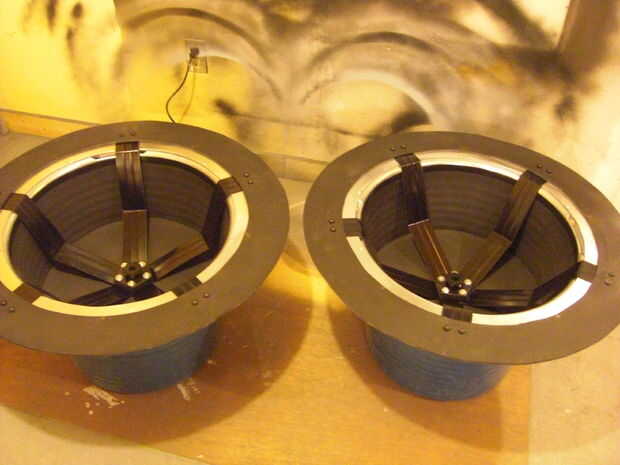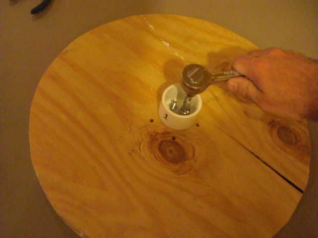 La segunda foto muestra otro 1-1/2" pvc tapa atornillada en el lado opuesto de la madera de la parte inferior para que la rueda se puede conectar al eje trasero. Las otras imágenes ir a través de la pintura, montaje y acabado de las ruedas.