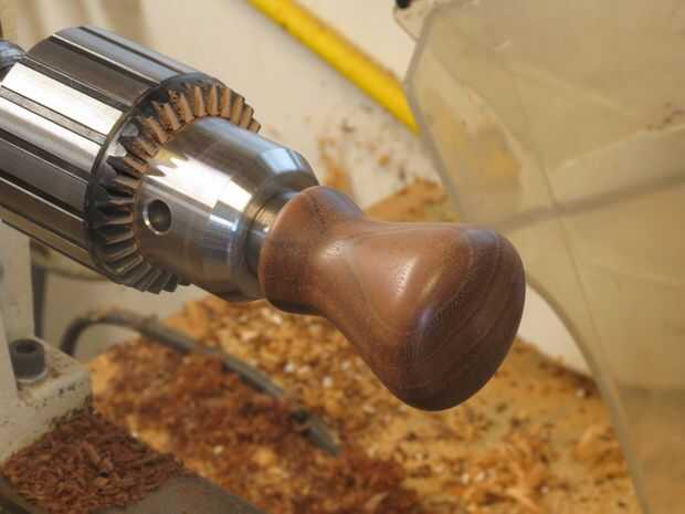 Probablemente el final más fácil añadir es el pulimento de fricción (Foto 1). Hay diferentes marcas, pero verifique con su tienda de artículos de madera/artesanía local o la orden en línea. Aplicar sobre la cantidad del tamaño de un cuarto sobre una toalla de papel. Limpie todo el espacio en blanco con el torno. Vuelva a encender el torno y mover la toalla de papel hacia adelante y hacia atrás a lo largo de la parte inferior de la madera. Debe sentir un poco de calor y esto es bueno porque ayuda a curar el pulimento. El polaco ayudará a sellar la madera y su blanco va a salir el torno con un aspecto brillante (Foto 2). Con el tiempo, la mirada brillante se desvanecerá, pero algunas personas están bien con eso. Prefiero sentir la madera en mi mano.