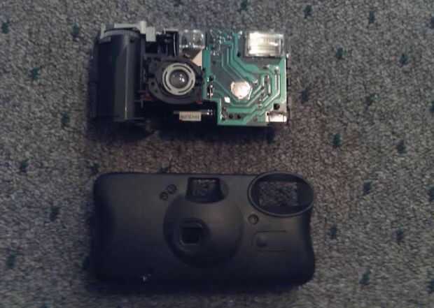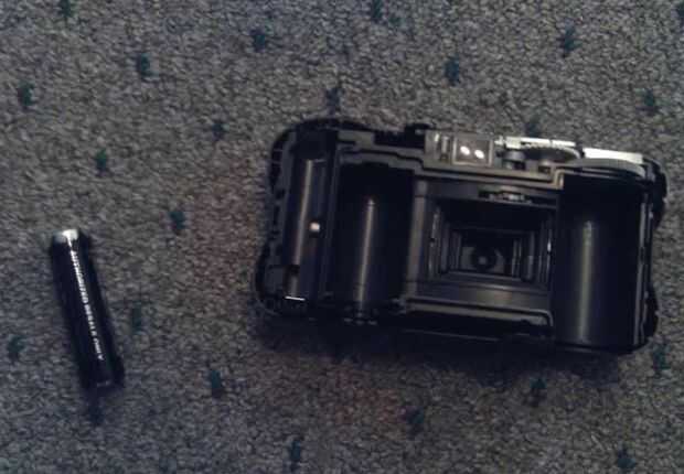 En primer lugar, sacar la parte posterior de la cámara. Ahora la película y la batería para evitar que de recibir una descarga, tomar la parte delantera de la cámara también.