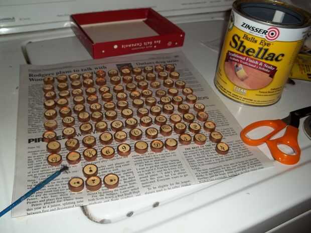 Ahora necesita laca en la parte superior de cada tecla. Coloque algún diario (la desordenada) sobre el espacio de trabajo y organizar las claves de la misma manera que hiciste con pega caliente. Tomar el pincel pequeño y