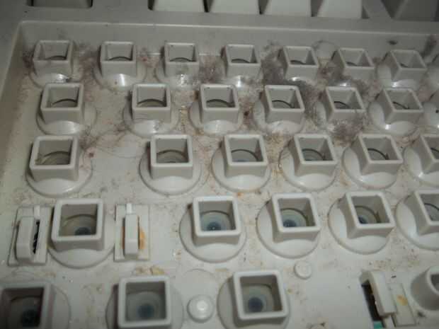Puede utilizar algunos aire para arruinar el polvo de las fuentes clave, suponiendo que el teclado es muy antiguo.
