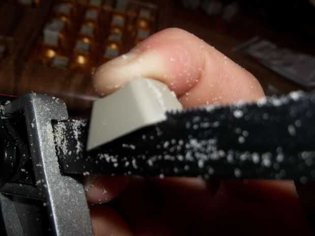 Iniciar con la tecla "Esc". Alicate para sacar la clave, entonces usar su pesados tijeras, serruchos o Dremel (mejor opción) para cortar los bordes de la clave. Rechazar la llave en la ranura original y reciclar las virutas de plástico. (Amo el medio ambiente y te va a querer volver!: D)