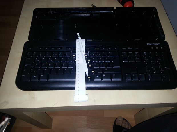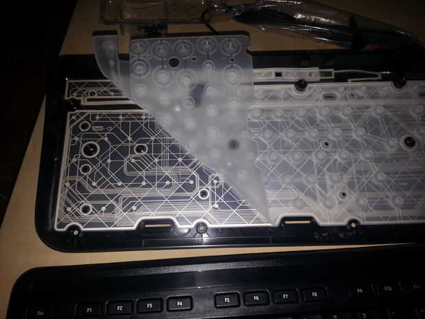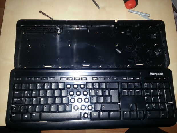 tomar la capa de la cubierta de los teclados y cortar con una herramienta de corte del taladro.
