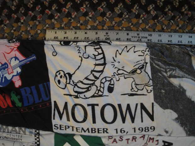 He utilizado sobre todo plazas con la impresión en ellos, pero también sería bueno tener algunos colores sólidos cortando cuadrados en blanco de los lados opuestos de las camisetas. Obviamente también tienes plazas más grandes o más pequeñas si prefieres.