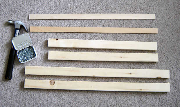 - Madera: varios pedazos 7,5 en X 1 pulg X 1/8 en