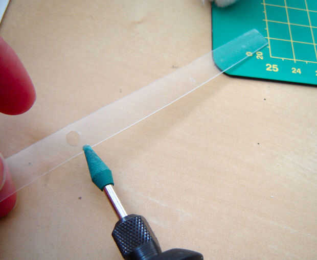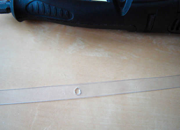 Luego mide y marca el centro de cada eje y perforó un agujero. Debe ser lo bastante grande como para el hilo de rosca grueso pase a través. Yo también suavizan el orificio con mi Dremel para que el hilo puede moverse libremente en el agujero.