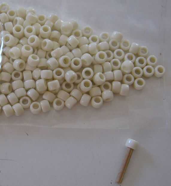 Los granos de plástico tenían un ID de 4,4 mm así que utiliza un taco de 5mm y lijar después de no perforar los granos minúsculos más amplias para el pasador de 5mm.