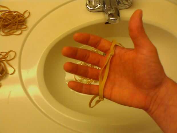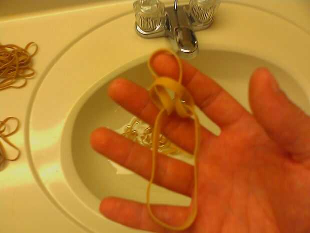 Tomar todas las bandas de goma que hay en el fregadero y nudo en un filamento largo