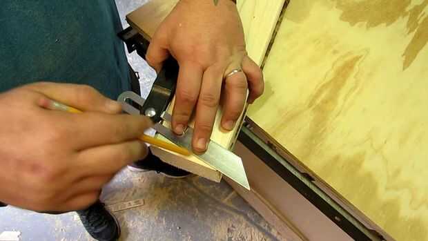 Entonces, calculó hacia fuera en el ángulo de lo que queríamos los brazos para recostarse. Usando un calibrador de biselado hemos marcado este ángulo en la parte inferior de cada brazo y luego cortarlas en la tabla VI.