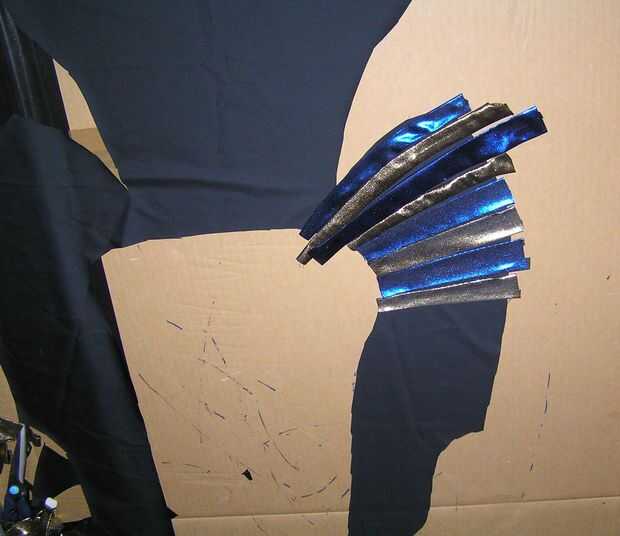 Pone la pieza de entretela termoadhesiva en la superficie de trabajo, tratados de lado (el lado que se supone que cuando se plancha) hacia arriba. En las secciones delanteras primero y trabajar de arriba hacia abajo. Desde la zona alta de uno de los frentes, la parte que parece un hombro o doblado ala. Tomar una de las tiras se graduó de la tela e introducirlo en el 'hombro' en sobre un ángulo de 45 grados, con el extremo más estrecho hacia el borde interno y el extremo más ancho hacia el borde exterior. Lo mismo en el otro lado. Hacer lo mismo con la siguiente tira de tela. Trabajar su camino hacia abajo de las secciones delanteras, con sus tiras de tela se graduó primero. Usted empezó en la parte superior colocando la primera tira en un ángulo; las tiras deben progresivamente horizontales en el momento de que llegar a la parte media superior. Seguir añadiendo tiras hasta la parte inferior de las aletas, tratando de mantener ambos lados incluso. Asegúrese de que la última tira de tela se coloca ligeramente más baja que la parte inferior de las aletas de la entretela, se ve mejor así, cuando se gira.
