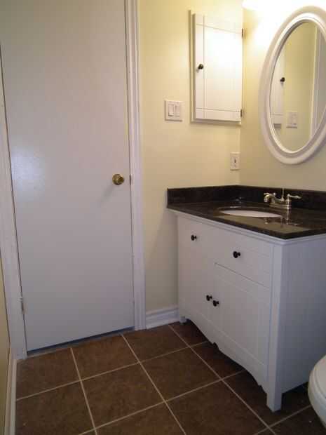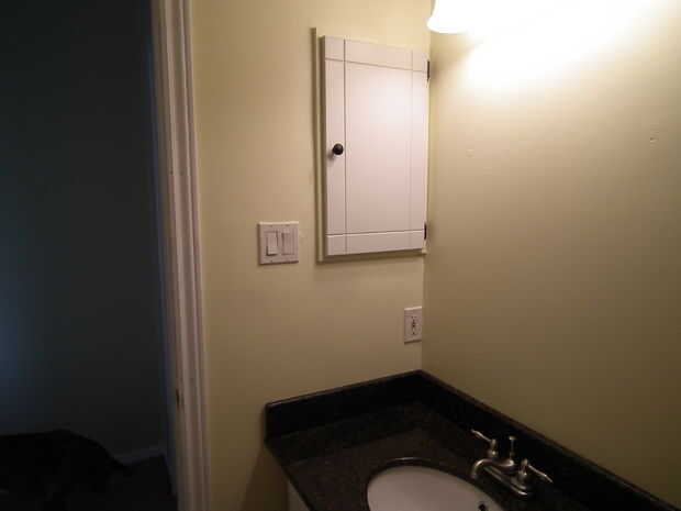 Casi listo. Hay un par de pequeños detalles a mencionar. Puertas de madera hacen mucho ruido cuando se cierran. Usted puede comprar poco auto burbujas de goma adhesiva que puede poner en la esquina superior e inferior de las puertas. Esto reduce el ruido mucho cuando las puertas se cierran. También en mi baño tengo un armario que tenía una antigua puerta de panel plano. Reemplazó con uno que hice para que coincida con la vanidad.