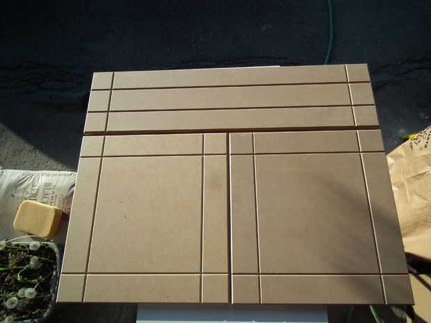 Este paso se hace más fácil mediante el uso de una sierra de mesa. También podría hacerlo con una sierra circular y un borde recto para guiarla. Mida la abertura en la parte delantera. Mina fue 31 "x 29". Cortar una sola pieza de 5/8" MDF para que coincida con ese tamaño. En este punto usted necesita decidir si desea agregar un cajón falso al frente. Esto suele ser una buena idea para que cuando las puertas están abiertas que oculta la parte inferior del fregadero. Mi cajón falso es 7". Lo primero configurar la sierra para cortar esa parte. Entonces me puse a cortar la hoja restante justo por la mitad. Desde la Sierra de mesa hoja 1/8" de espesor, le da un espacio para trabajar con al ajustar el posicionamiento de las piezas.