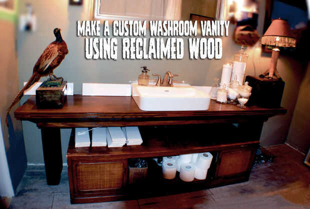 Cogí una vieja mesa de café de década de 1970 y un montón de madera desechado de la basura al lado de nuestra tienda (contenedor buceo!!!!!!) y hackeado en él hasta que se convirtió en nuestra vanidad del cuarto de baño nuevo. Te voy a mostrar cómo se hizo y también la alegría que se puede tener horsing con basura de otras personas!