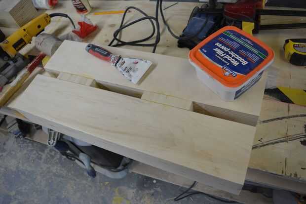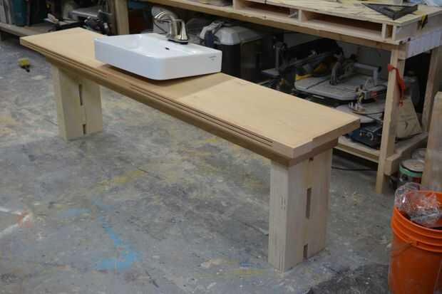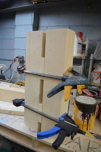 Bueno me has libre manos esto y probablemente debería haber utilizado herramientas para asegurarse de que las piernas estaban en el suelo. I Cortar rodajas galleta en los espaciadores y las piernas, luego había pegado el heck fuera de él y les afianzado con abrazadera juntos. Esto consiguió un pegote grande de relleno de madera para cerrar las costuras, luego un riguroso lijado para hacerlo liso otra vez. Después de que seque lo seco que encajen a la encimera para asegurarse de que todo cabe.