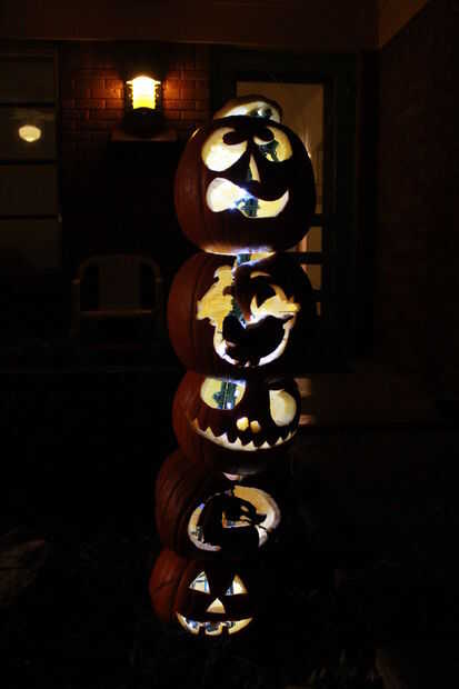 Si no tienes un patio o no quiere hacer un gran tótem, simplemente puede seguir estas instrucciones con calabazas más pequeñas para crear una pieza central. Hay un sinfín de opciones para calabaza tótems. Puede utilizar diferentes tamaños de calabaza para lograr un efecto de amontonamiento (calabazas grandes en la parte inferior, calabazas pequeñas en la parte superior). Usted puede pintar las calabazas, además o en lugar de talla de un diseño. Usted puede incluso "personalizar" su tótem con sombreros, pañuelos o cualquier otro objeto. Lo más importante es ser creativo y divertirse!