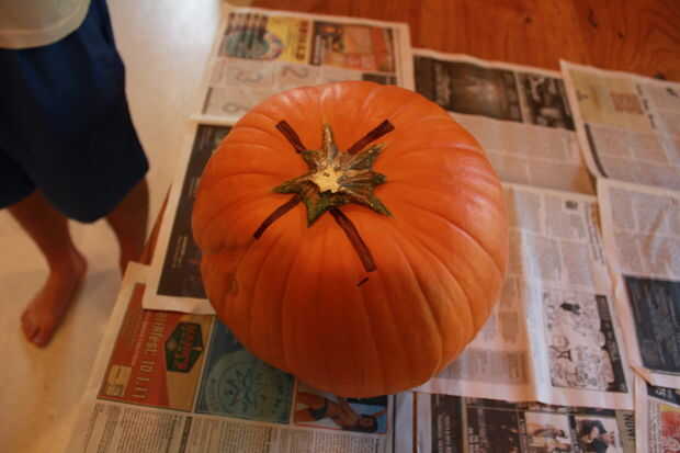 Nota: Después de construir nuestro Tótem calabaza, encontramos que las líneas de 3-1/2 pulgada en las calabazas crearía un tótem más estable (en lugar de las líneas originales de 5 pulgadas). Asegúrese de que para que coincida con las mediciones efectuadas en este paso a las mediciones efectuadas en el paso 12.