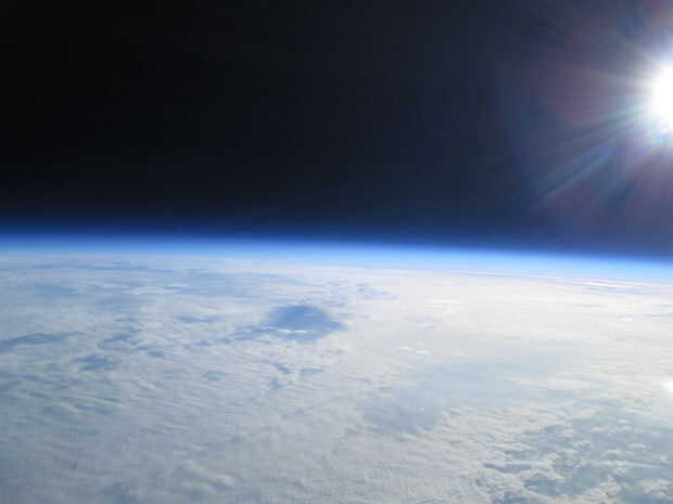 En orden para tomar este tipo de fotografía necesita enviar una cámara hasta la estratosfera. Nuestro fue 38 Km (124.000 pies) hacia arriba. Esto es bastante fácil: puedes adjuntarlo a un enorme globo, dejar subir hasta que el globo estalla (por el v. baja presión en el borde de la atmósfera) y luego caerá de vuelta a la tierra.