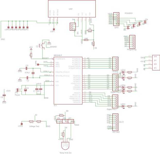 A este paso son los archivos de esquema y placa de águila que usé para el tablero de mi tracker, junto con dos archivos .zip: una con los archivos de tabla y esquema y otra que contiene todos los archivos gerber para las distintas capas. Mi consejo funcionó bien, pero no era 100% perfecto, por ejemplo, los LEDs en el puerto serie líneas realmente deben tirar hasta + 3v3 en lugar de tirar hacia abajo a la tierra para que sean de cuando no hay actividad.