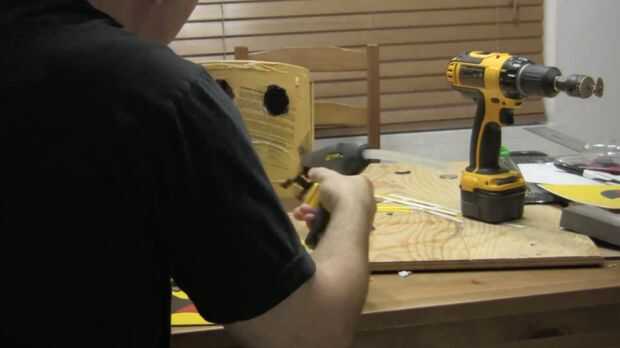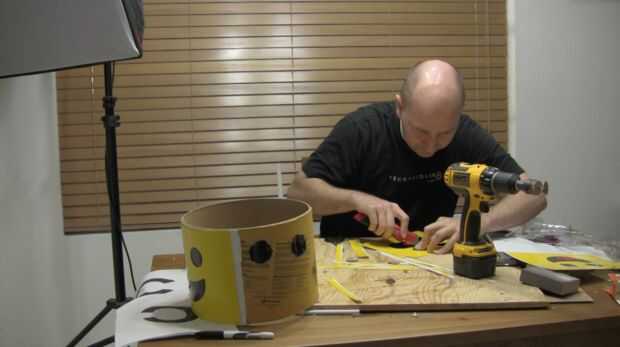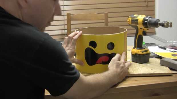 Ahora tomamos nuestra plantilla de cara y cortar los agujeros del ojo, después colóquelo en el tubo de forma y pégala hacia abajo. Hacemos estos pasos con las tres caras.