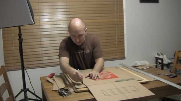 Ahora solo necesitamos trazar el fondo cónico nuevo pedazo, en otra pieza de cartón de la caja, y luego recortar. Se trata de la pieza frontal.