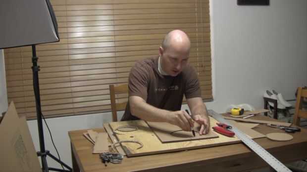 Ahora hacemos los agujeros en las piezas laterales para los brazos para caber a través de. Si quieres que sea un círculo perfecto, querrá hacer la abertura más grande que entonces usted podría pensar. Comencé con un agujero de diámetro de 6 pulgadas, bajando de 1 1/2 pulgadas desde la parte superior. Esos agujeros eran demasiado pequeños. Cuando he intentado ponérselo, no pude obtener mis brazos a través de. Así que terminé haciendo un óvalo. 6 pulgadas de ancho por 8 pulgadas de largo. Si desea un círculo perfecto hacen un perfecta 8 pulgadas de diámetro. No te preocupes si se trata de dos pequeños, usted puede siempre cortar más grande más adelante.