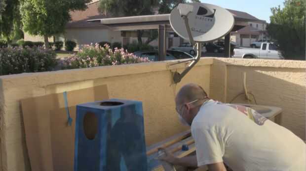 Ahora tiempo para pintar! Usé pintura en Spray de brillo azul. Hice varias capas para obtener todo bien y cubierto. Asegúrese de rociar unos 10 a 12 pulgadas de la cartulina. Y hacer varias capas finas en lugar de uno o de 2 pesado verdadero. Entonces rocíe con una capa clara la pintura de aerosol.