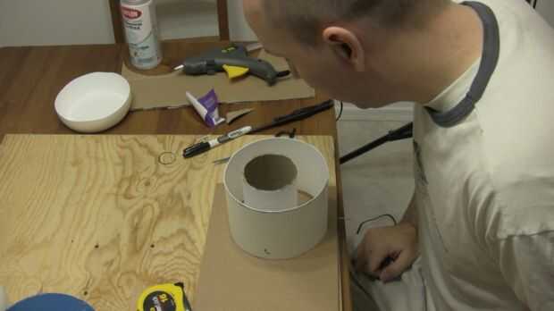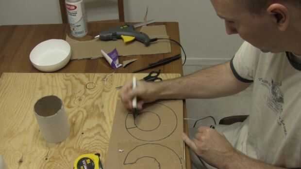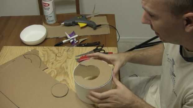 Ahora tenemos que subir con nuestras piezas de lado. Primero coloqué el tubo de cilindro interior a poco del centro. Así que ese espacio sería un poco mayor para mi palm. Siempre puede utilizar un tubo interno más pequeño, pero este fue el aspecto que iba para. Entonces remonta en el interior de ambos tubos en un pedazo de cartón. Dejándome con dos círculos. Siguiente que decidí que quería que la apertura de la mano que. Añadir dos líneas bajando. Luego cortar mi pieza. Esto se convierte la plantilla para los otros 3 lados. Siga adelante y todos los cortar ahora.