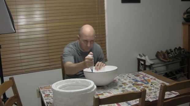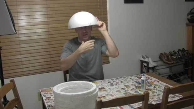 Primero en nuestra semiesfera puesto unas líneas en el frente, a donde quiero mi abertura del casco que. Entonces necesitamos pegamento en los primeros 4 de nuestros anillos. Usar el pegamento de poliestireno, o pegamento elmers blanco, creo que básicamente son la misma cosa.