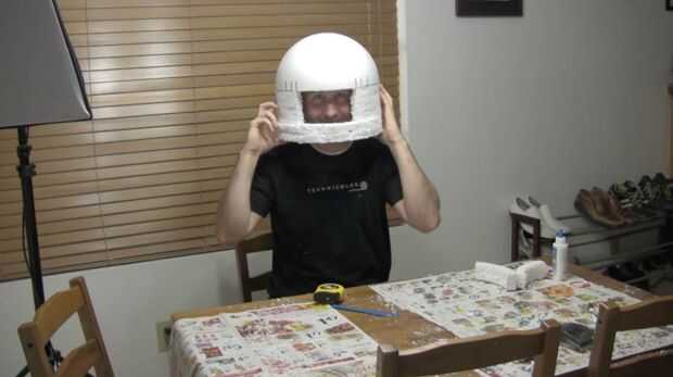 Ahora nos corte la espuma de poliestireno de nuestra zona de la cara. Hice un poco más pequeña entonces el tamaño real que yo quería, porque el siguiente paso será obtener la forma correcta de la abertura del casco. No pegue los dos anillos de la parte inferior en todavía.