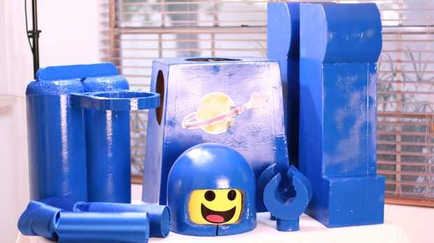 Hurra hemos completado el traje de hombre Lego - Benny de la película de Lego. Aquí podemos ver todas las piezas del traje. Fue un gran éxito en las fiestas de Halloween. Fue un poco difícil moverse. Definitivamente, usar algún tipo de ligas para las piernas. Y recortar piezas de la pierna para sentarse alrededor de 1 pulgadas de la tierra, así no arrastran al caminar.