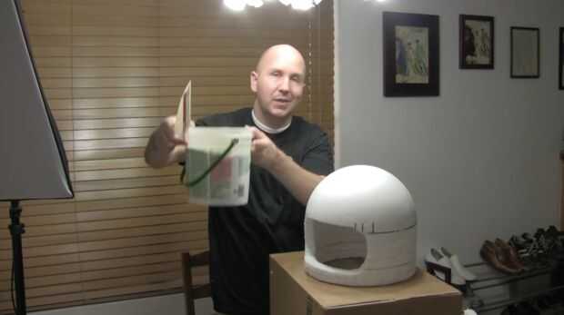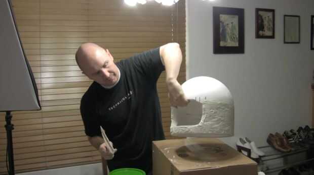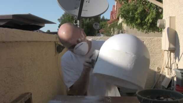 Ahora cubrimos la pegado anillado parte de abajo del casco con compuesto para juntas. Este paso no es exactamente necesario pero crea un mejor producto más robusto en el final. Después de que se seque completamente seguir adelante y darle un buen lijado. No se olvide de soplar el polvo!