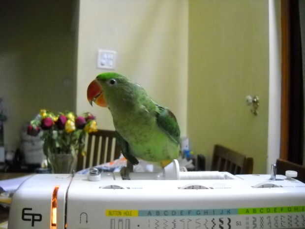 OK esto es donde todo se junta. Primero coloque tanto las correas en una sola pieza. Asegúrese de que se enfrentan a un mismo lado, que significa interior a interior y exterior al exterior. Luego coser la otra pieza para coser las cintas en el borde de las piezas. Asegúrese de probar en su pájaro primero para asegurarse de que se ajusta a derecho.