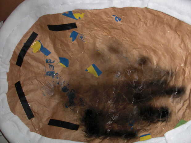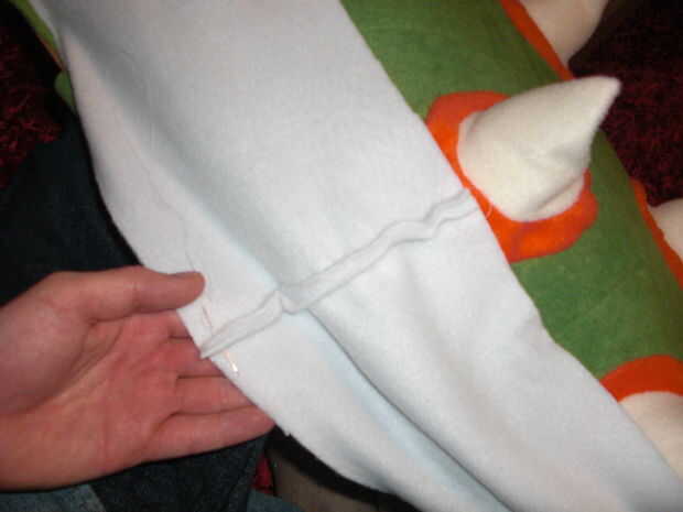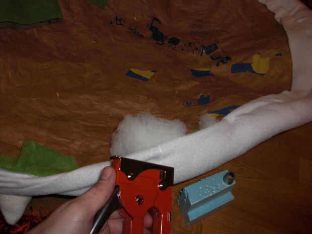 Para completar la cáscara tiene un borde de agradable, mullido, blanco. La primera parte es fácil, solo lo básico como la tela de la cáscara. Pero cuando se fije la parte de atrás no para tener las piernas bendy mostrando así que el otro tipo de grapadora se llama para. He tenido problemas lo que hasta el papel maché, sobre todo porque no tengo nada inelástica para poner en el otro lado que toma la fuerza de la grapa (lo que se llama de todos modos?).