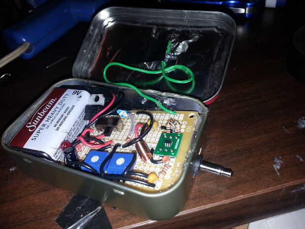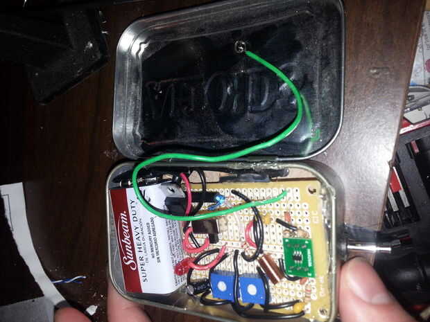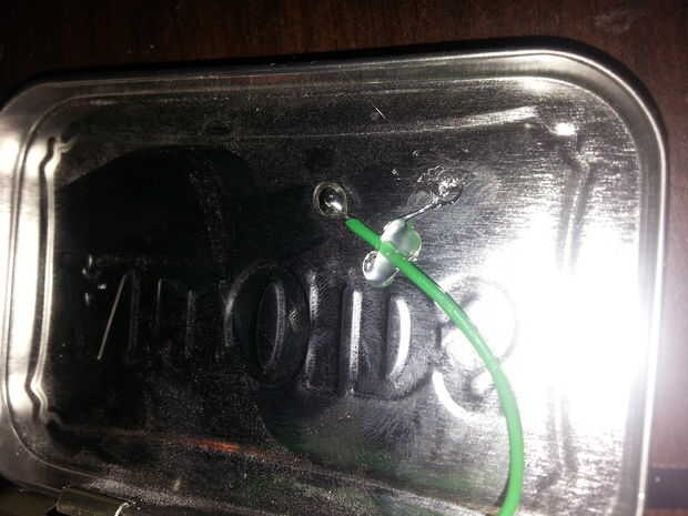 1 - la lata altoids se utiliza como la antena! Cuando estaba tratando de averiguar qué poner este circuito en una vez que es finshed que me olvidé de la antena. Ahora, las antenas son muy útiles pero algunos pueden encontrar desagradable. Después decidí usar la lata altoids pensé que tendría que funcionar la antena fuera de la lata y aunque entiendo el gran propósito de antenas era un poco borde en sobre una antena que sobresale. Se vería menos compacto y por todo el lugar. Entonces me di cuenta de la lata puede utilizarse como antena. sólo tiene que conectar la antena del circuito a la lata. La una-lata-a! Había soldado el cable de la antena en el interior de la tapa. Para mi sorpresa soldadura fluyó muy bien a la lata. Ahora ya estoy usando el interior tapa de la lata como la antena allí son algunos pros y contras. Uno pro es más bonito, se ve un segundo pro, es que si abres la lata la tapa actúa como plato y transmite un poco mejor. Ahora es uno con. La lata puede transmitir audio muy bien utilizando la tapa como la antena mientras está cerrado, pero en algunos casos encontré que cuando está cerrado hay cierta distorsión e indeseado estático, no tengo ni idea en cuanto a por qué esto sucede pero no todo el tiempo. Pero si sucede simplemente abrir la lata y la tapa hacia la radio y funciona muy bien:) objetivo. Esto sólo sucedió en una radio (de los cuatro que he probado) así que las probabilidades de buena calidad de sonido mientras son buenas!