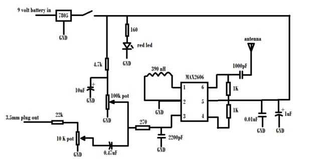 los rectángulos son símbolos de las resistencias. los que tienen una flecha es el símbolo de los potenciómetros. El símbolo esquemático del resistor es más conocido como punto 3 como-/ \ / \ / \- pero para facilitar la estoy utilizando el otro símbolo que es simplemente un rectángulo. Bueno aparte de lo que figura en el esquema va a necesitar un PCB, batería de 9 voltios + complemento, lata altoids, alambre y todas las herramientas que son comunes con la electrónica. Como soldar iro, arma de pegamento, alambre entre strippers, dremel y todo. Usted también necesitará un 3, 5mm plug. Esto es para conectar el teléfono y dispositivos similares.