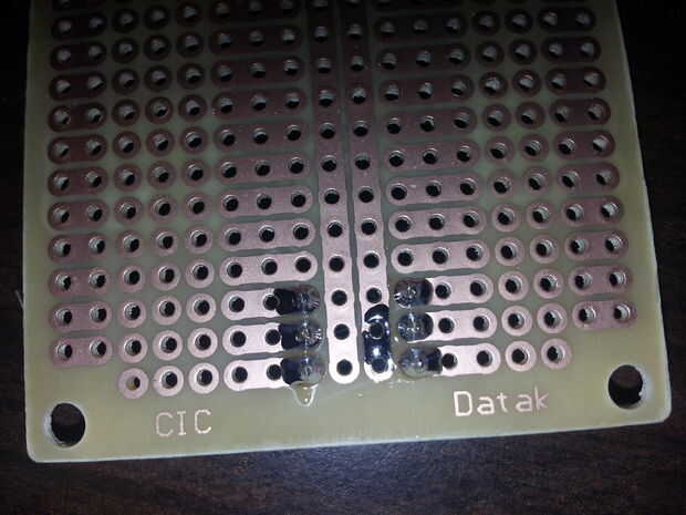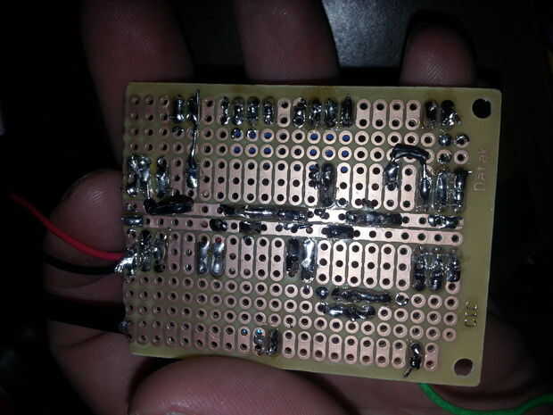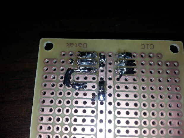 Start soldering the circuit! Soldar desde el interior. Salvó el regulador de 5 voltios y condujo para el final. No estar caminando a través de la construcción del circuito paso a paso porque es sencillo. Sin embargo, voy a mostrar algunas fotos de la progresión de la construcción.  Las imágenes no están destinadas para una guía porque saltar tomando fotos. Se significan para solo mirar y observar, tratar de mantener todos sus componentes tan cerca como sea posible. Tuve que usar algunos finde de los cables de puente para completar las conexiones. Las probabilidades son que va a utilizar puentes demasiado porque este PCB no está diseñado para cualquier circuito específico. Es un IC PCB.