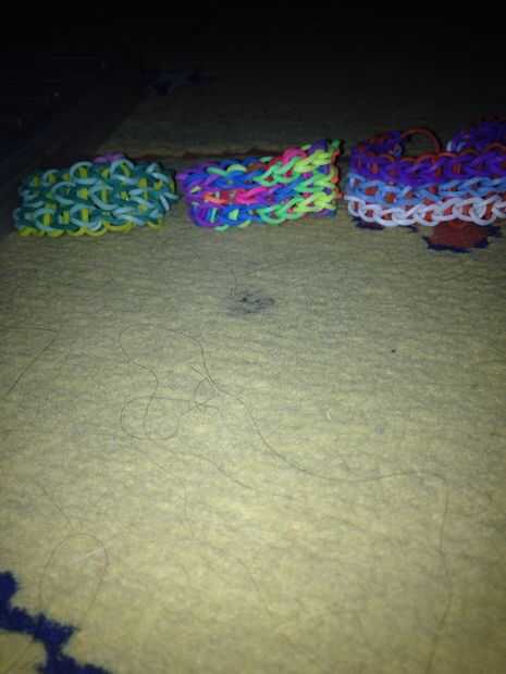 Esta es la pulsera como se verá cuando esté terminado. Yo recomiendo usar 3 colores diferentes para esta pulsera. Antes de poner las bandas en el paso siguiente Asegúrese de que doble todas las bandas, si crees que me refiero a hacer una banda de la