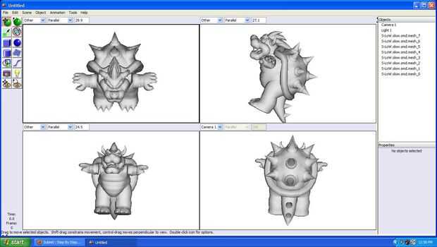 abrí el archivo OBJ usando el arte de la ilusión, y tienes un bonito escala de grises todo el cuerpo de Bowser, que luego puse a mallas porque solo me falta la cabeza, y él es algo más fácil de disecar esta manera. Esto era todo nuevo para mí, y había un uso gratuito del botón "undo" como me tropecé a través de. No se arrepiente aunque.