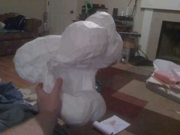 .. .y ahora para la parte consume tiempo. ¿Sé, derecha? Cortar y montar la cabeza con pegamento de la escuela del buen viejo Elmer. Esto va a tomar algún tiempo y que frustrante pero hay esperanza! Pepakura tiene un visor descargable gratuito que permite comprobar su colocación fuera de lo que has impreso, porque mucho después de que te has ido cruz-eyed esto averiguar todo lo comienza a mirar a la misma.  http://www.tamasoft.co.jp/Pepakura-en/download/Viewer.html Aquí le damos algunas fotos al azar en el camino. Y he limpiado la casa desde entonces.