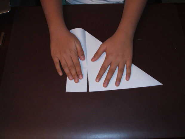 Asga una esquina de su papel y dóblela hacia atrás para hacer un trapecio como en una fotografía. Doble y doble el lado colgando y con su dedo a arrugarse lo cada vez. Ahora, usando ambas manos, rasgar el borde con la cara totalmente plana (foto dos), con cuidado, para crear un cuadrado como en el cuadro tres.