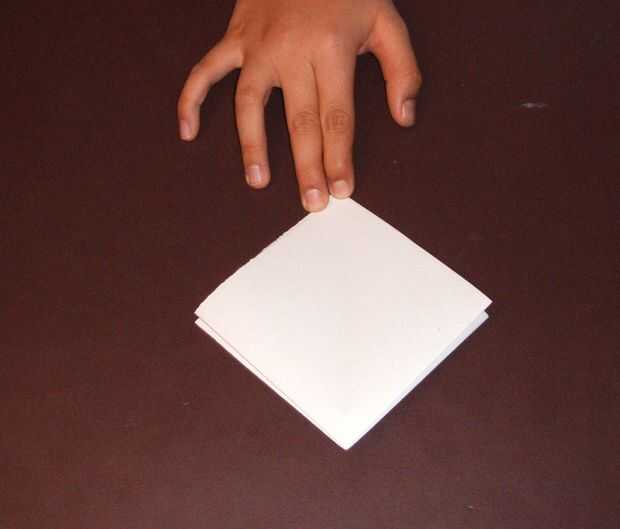 Con ambas manos, pellizcar dos opuesto diagonal y tire de ellas hacia el centro. Usted debe conseguir una plaza como en la imagen.