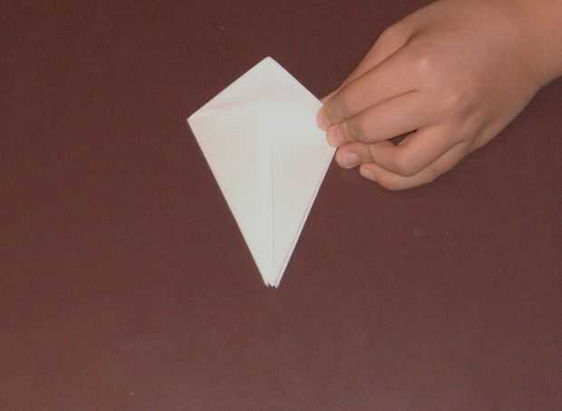 Pizca de dos lados opuestos otra vez y hacer una flecha que apunta hacia el lado abierto del papel como en la primera foto. Hacerlo a ambos lados.